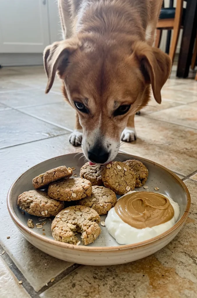 Keep the dip in the fridge and serve chilled. If you have a peanut butter-obsessed pup, a dab of the dip on top will make these cookies irresistible.