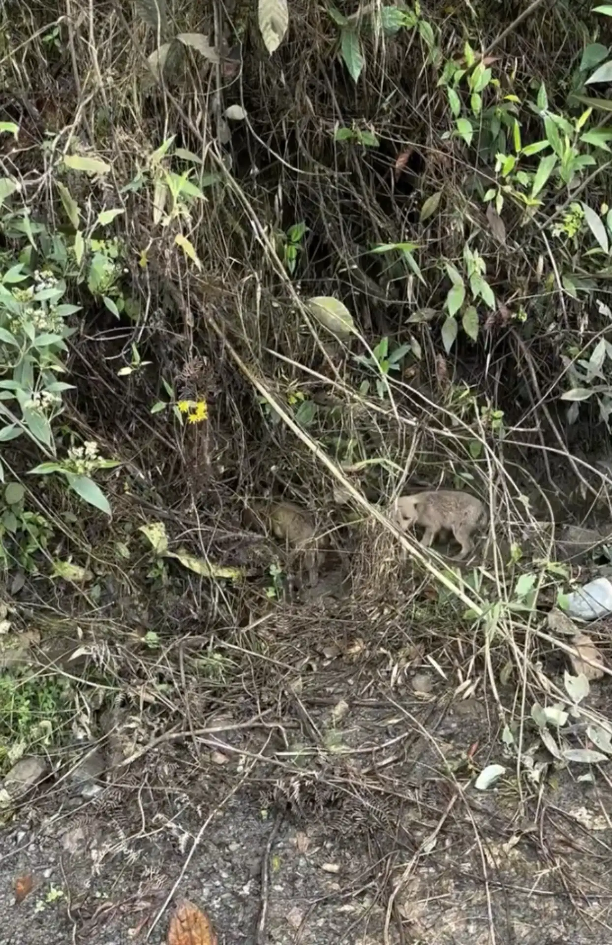 They were hiding beneath heavy brush, likely left behind with little chance of survival.