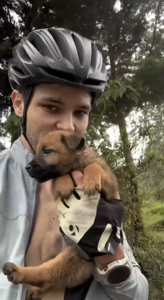 Two Puppies Carried Uphill In Cyclists’ Shirts
