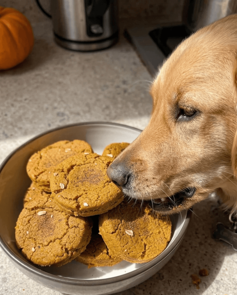These pumpkin dog cookies pack flavor, fiber, and healthy fats without any dairy.