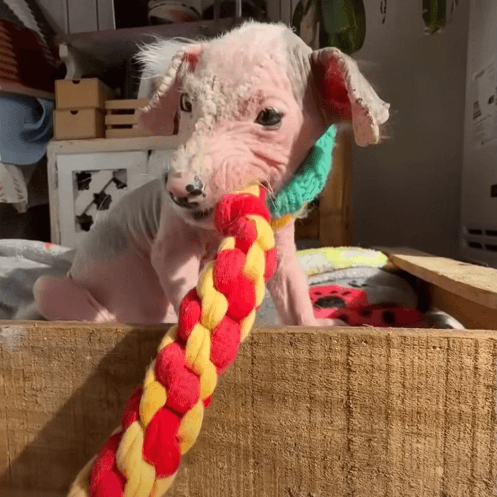 His fur began growing back, thicker and softer. His body slowly began to look like it belonged to a puppy again.