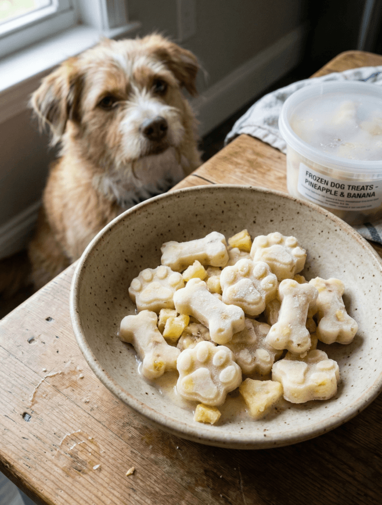 Keep your furry friend cool with Frozen Pineapple Banana Dog Bites. These tropical treats are a great way to hydrate your pet on a hot day.