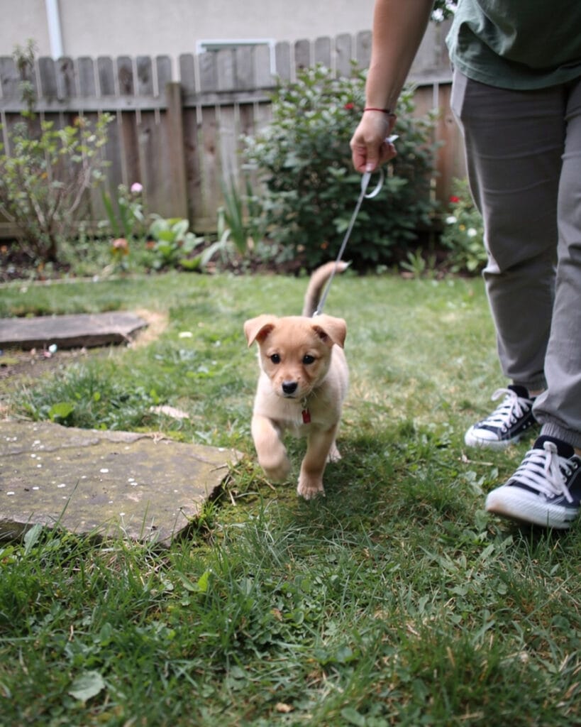 ๐ Tip: Always use the same phrase like โGo pottyโ so your puppy connects the command with the action.