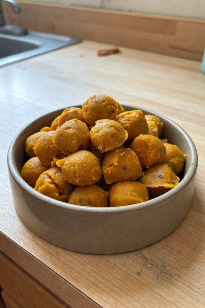 - Freezer: Lay treats on a tray to freeze solid, then transfer to a freezer bag. Freeze up to 3 months. Thaw in the fridge or microwave briefly to soften before serving.