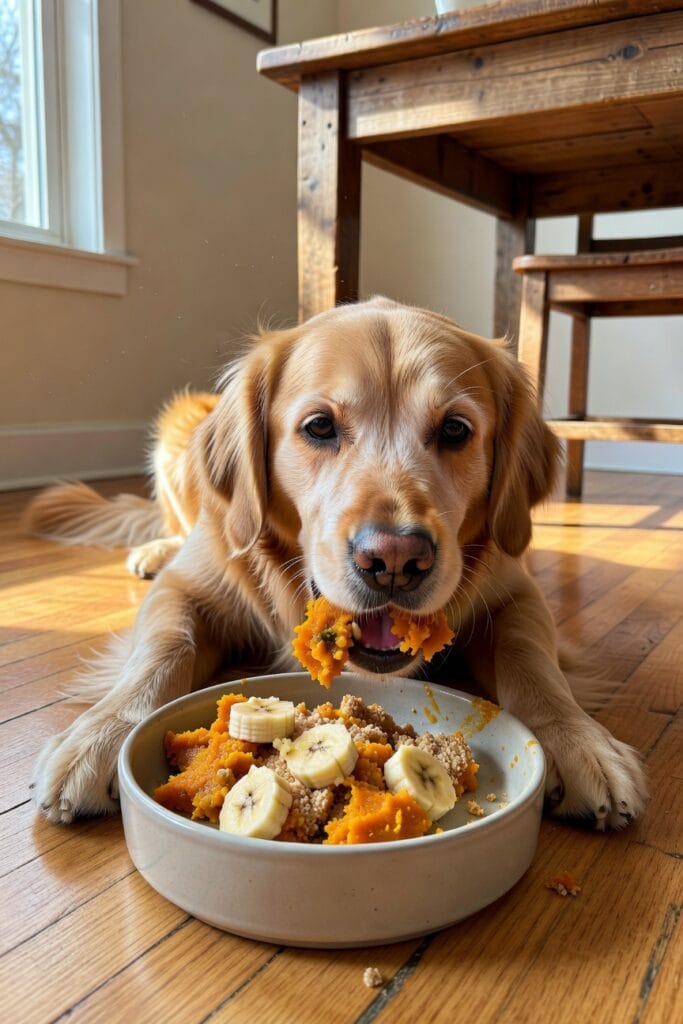 - Pumpkin provides fiber, which helps regulate digestion, especially in senior dogs who struggle with constipation or loose stools.