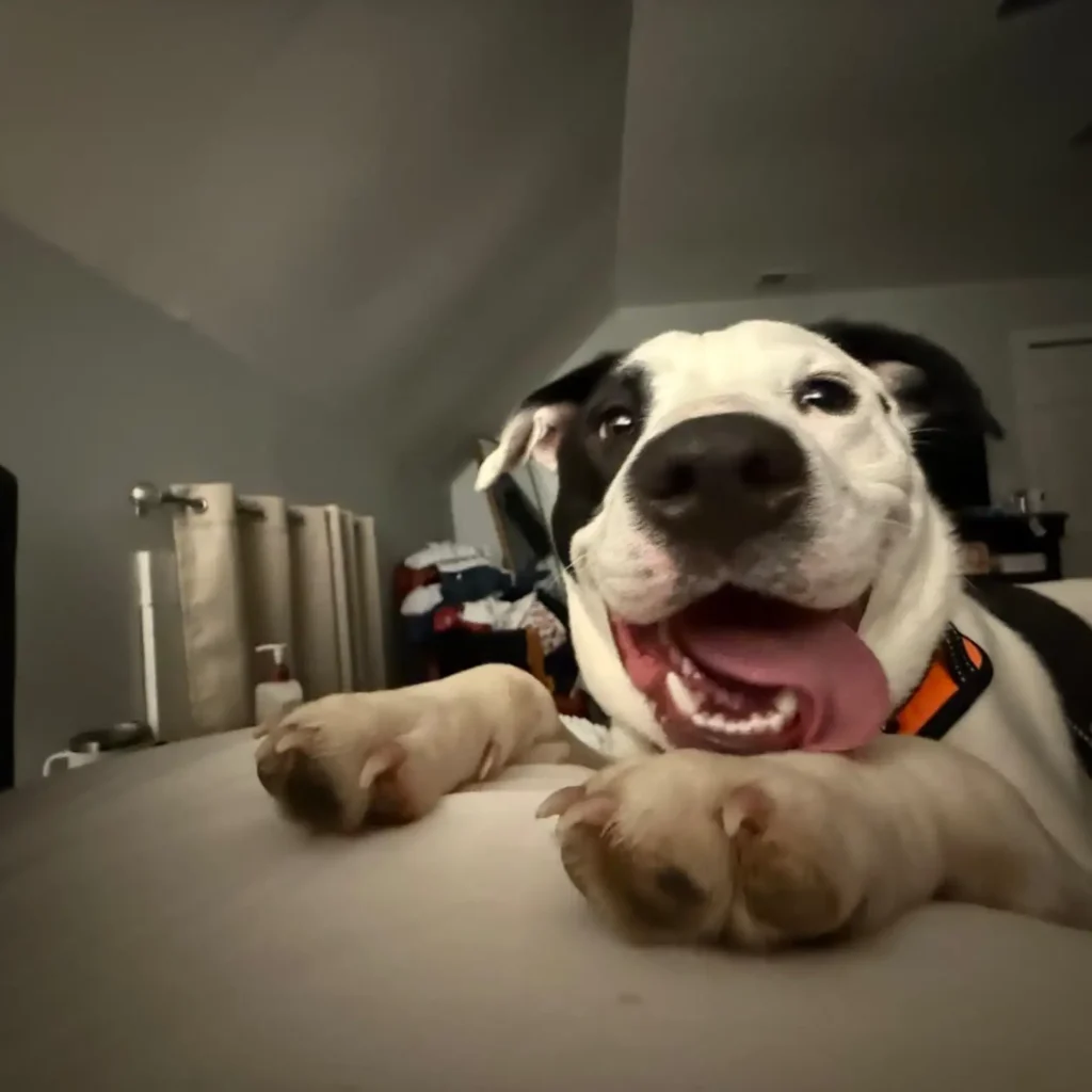 She shared that Bowie loves to play with other dogs and has fully embraced his role as a professional snuggle bug.