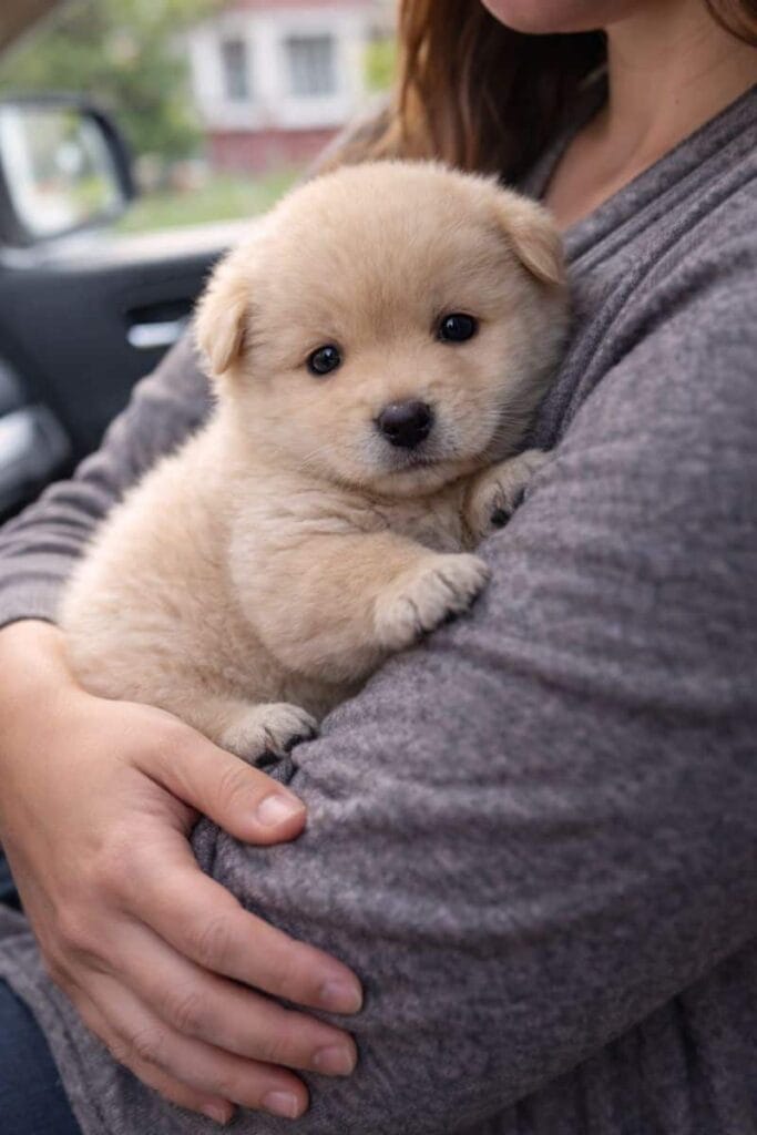 The car ride was quiet. The puppy stayed curled into a small ball, watching the world with wide eyes. Everything was new, but fear no longer ruled the moment.