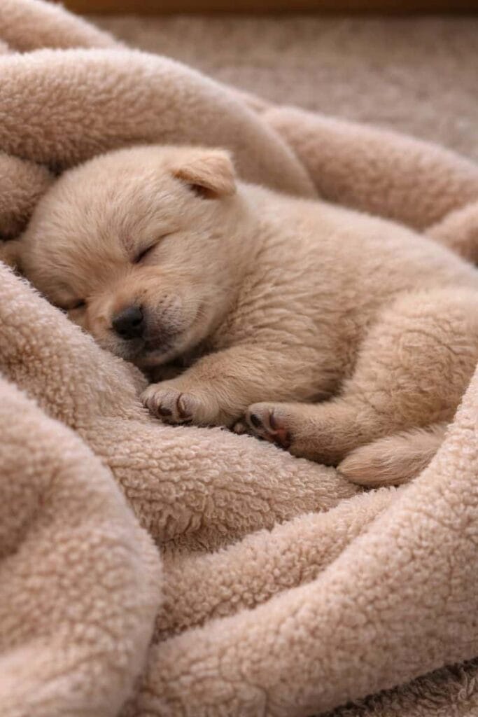 A human stayed close. The puppy curled up and sighed, a deep sound of relief from such a small body.